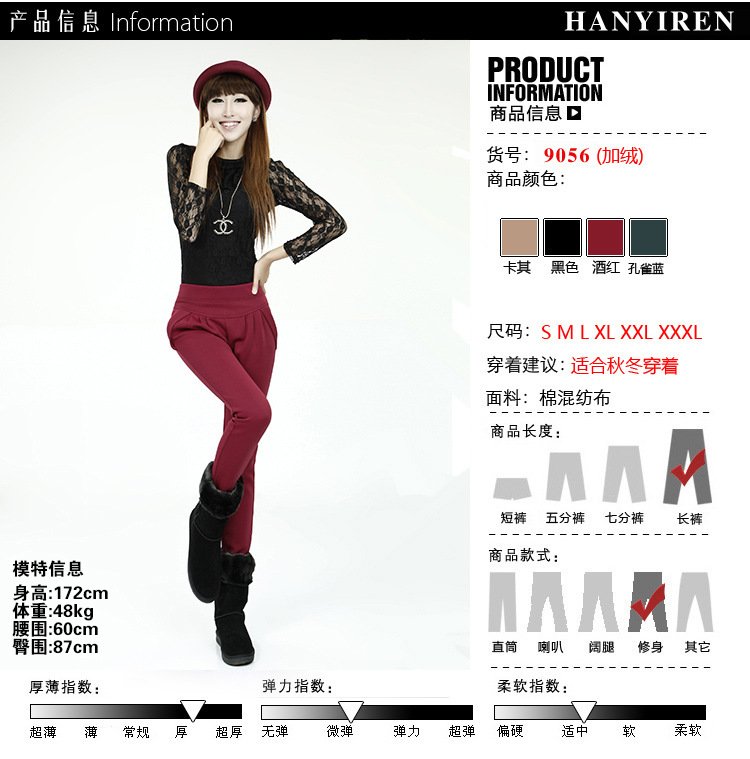 工厂直销-2012新款冬装女装松紧腰加绒优质打底裤子