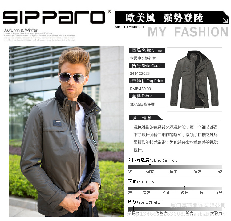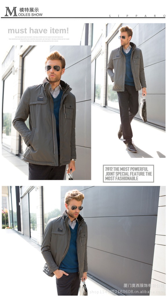 2012冬装新款夹克外套 儒雅简洁男士外套 灰色立领男士中长款外套
