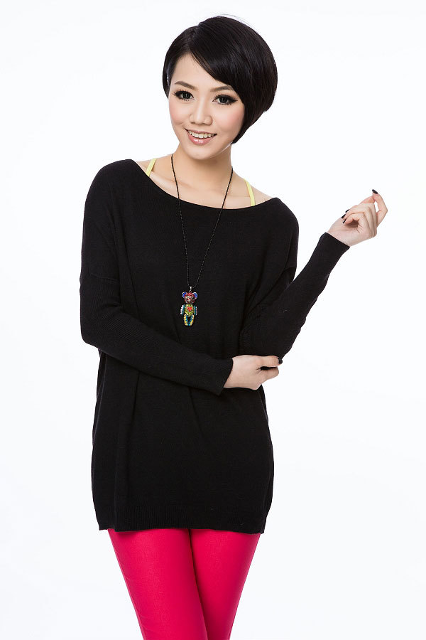 春秋款新品韩版宽松大码圆领套头袖长款含兔毛薄款毛衣9857