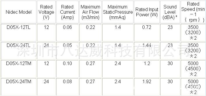 50x50x10mm D05X nidec fan12/24v散热风扇,工业风扇小型风扇