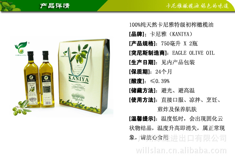 卡尼雅KANIYA中国总代理原瓶进口特级初榨橄榄油750ML*2贵宾礼盒