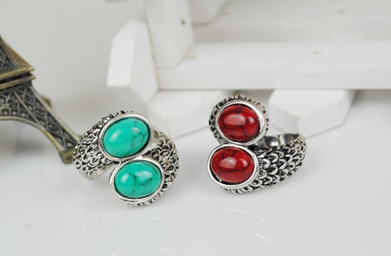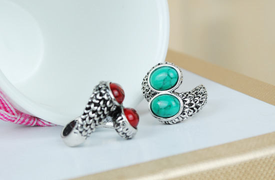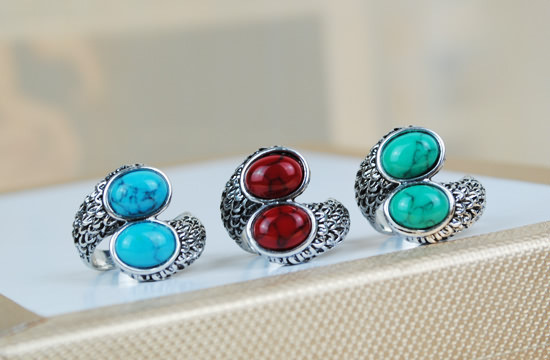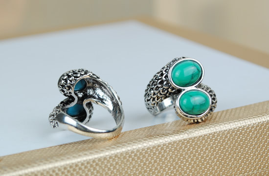 复古欧美原单戒指 天然松石戒指 双松石戒指 个性戒指批发