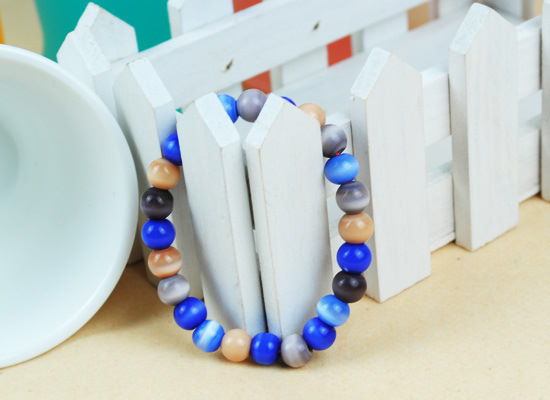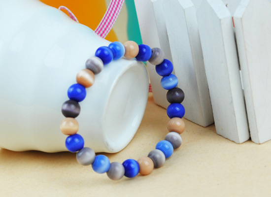 仿猫眼石手链 女式米珠手链 时尚编织手链 精品店货源批发 8mm