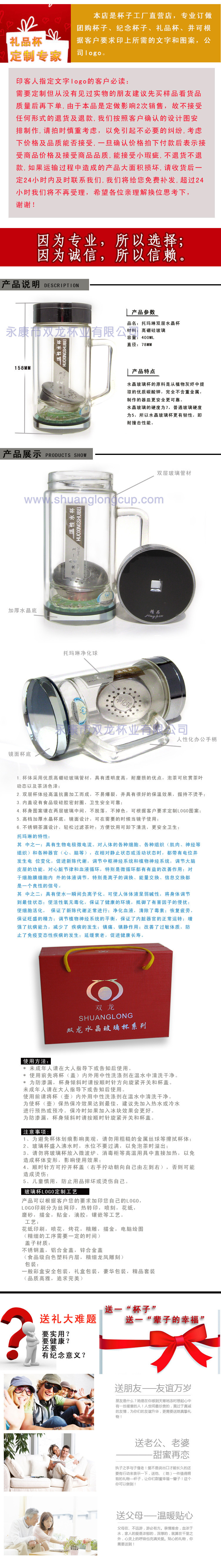 厂家供应 双层玻璃杯 保温杯 茶杯 广告杯 纪念品 可打LOGO