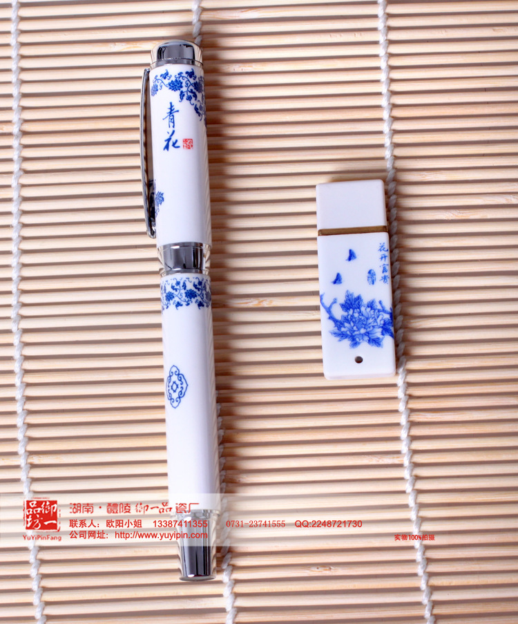 龙年热卖礼品 青花瓷陶瓷时尚商务套装 青花瓷传统U盘 真瓷笔