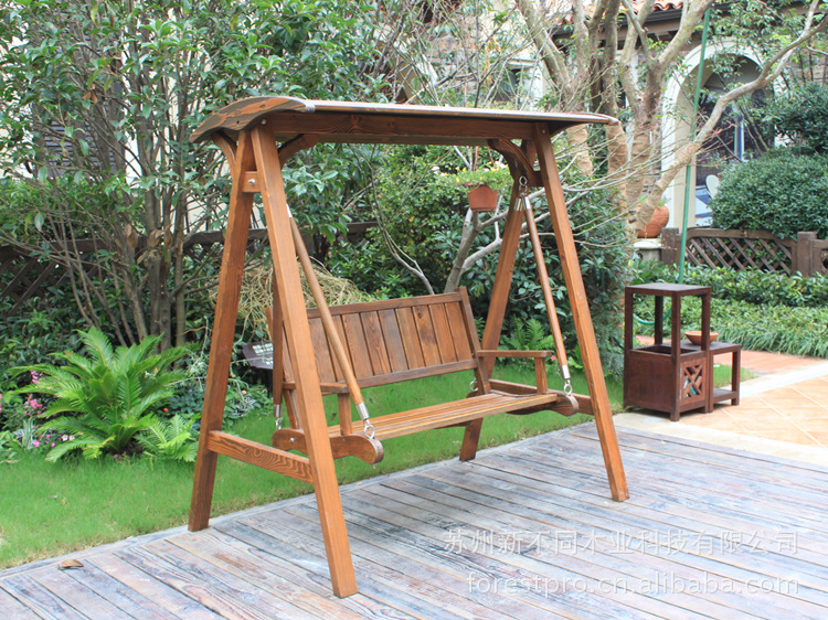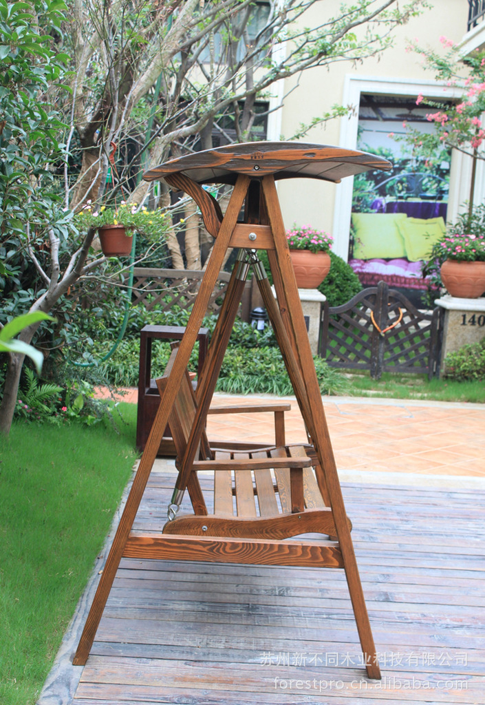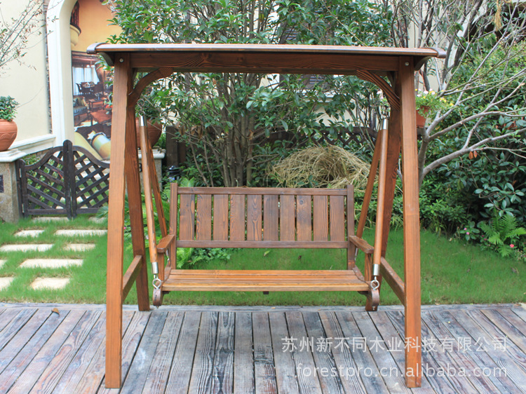 户外秋千/古典刻纹炭化木秋千/双人秋千