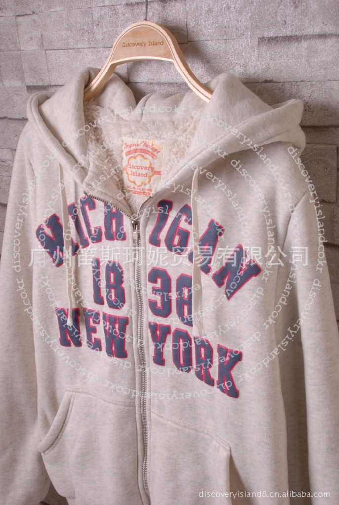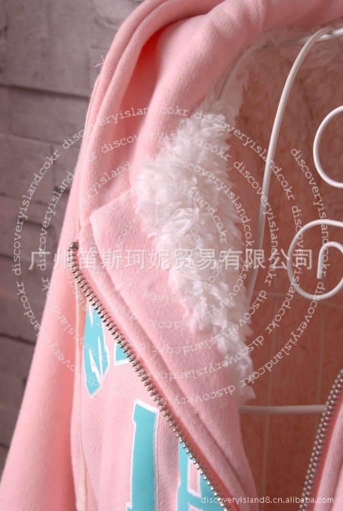 韩国discoveryisland原单冬季新款毛内胆加厚短款保暖拉链棉卫衣
