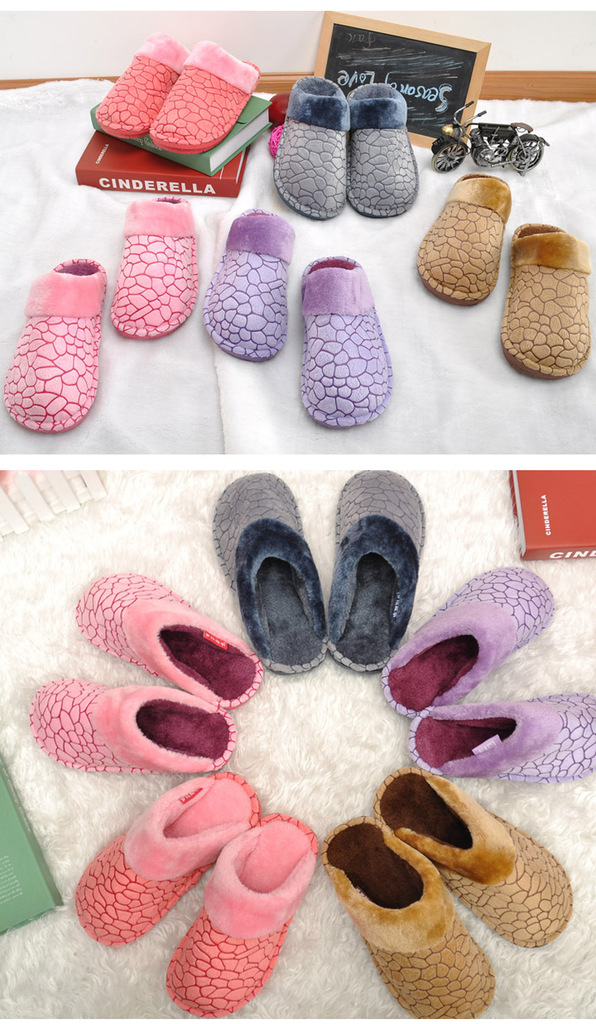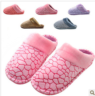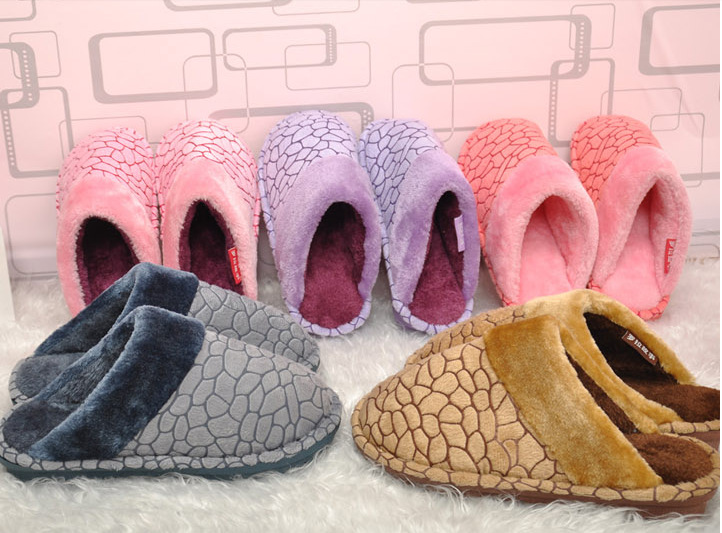 批发创意石头纹水立方高档超柔长毛绒家居男女情侣室内棉拖鞋保暖