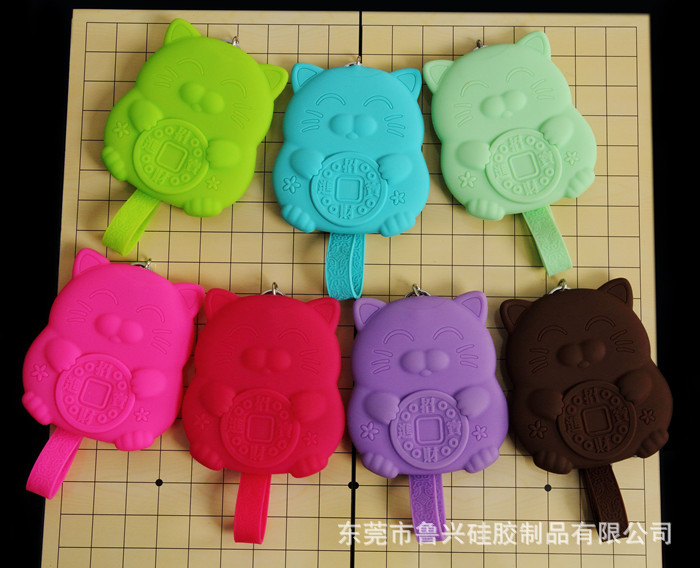 超Q超人气彩虹糖果色硅胶零钱包 可爱招财猫钥匙包 现模低价批发