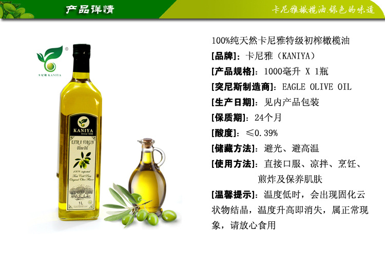 卡尼雅中国总代理原瓶进口特级初榨橄榄油1000ml瓶装
