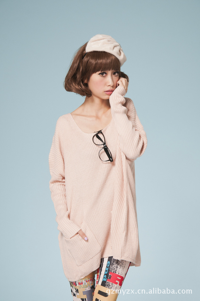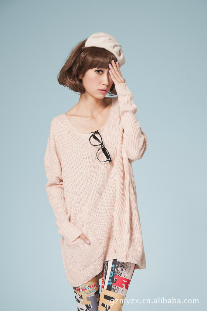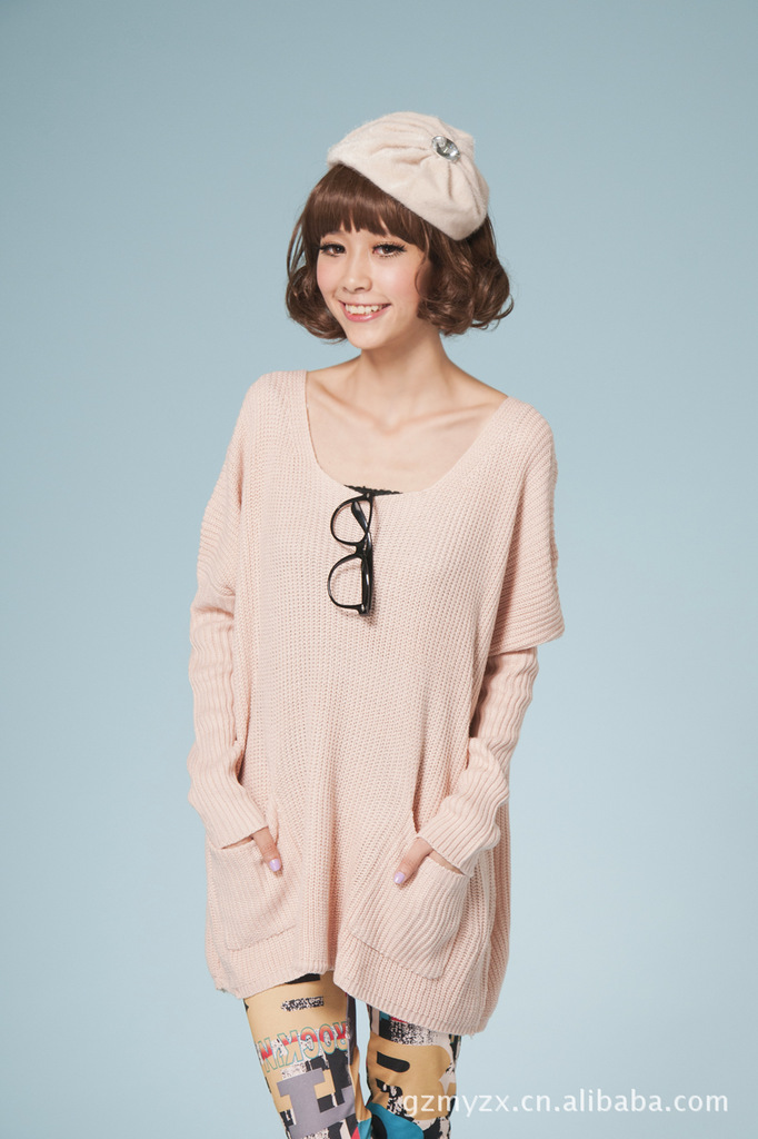 2012毛衣在线秋装新品 时尚大版圆领长袖套头毛针织衫7118#