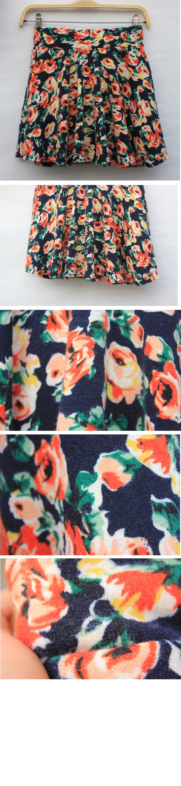 2012秋冬女装韩国新款兔毛大码蓬蓬裙毛呢半身高腰打底短裙印大花