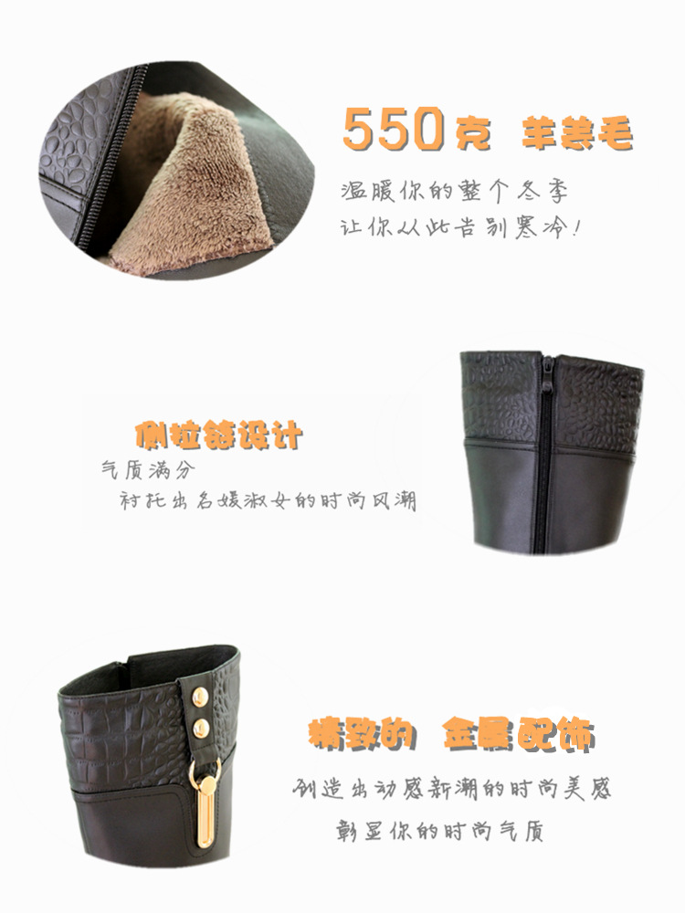 2012新款头层牛皮羊羔毛加厚侧拉链高跟靴女鞋 秋冬高跟鞋女鞋