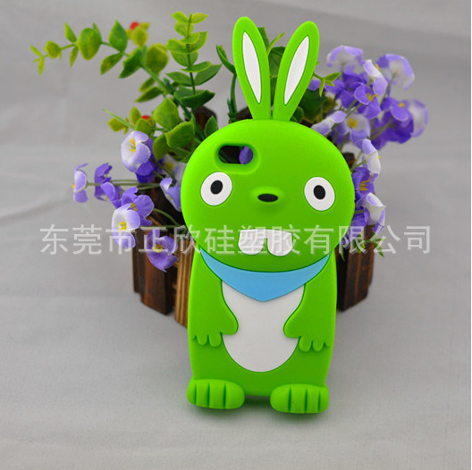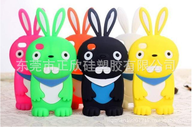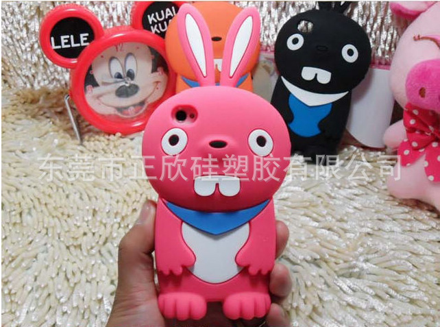 苹果硅胶手机套 Iponge4S/4G龅牙兔手机保护套 立体卡通兔子外壳