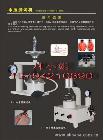 雨衣面料、滑雪服面料、帐篷面料、服装面料手动水压测试机