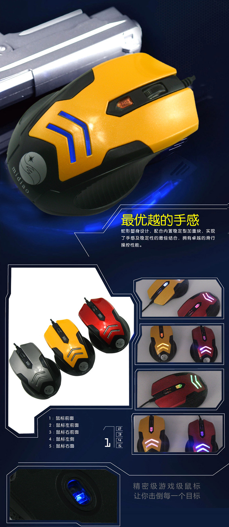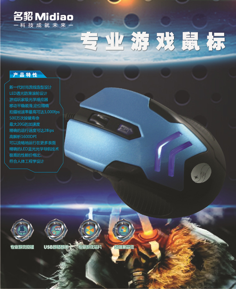 深圳键盘鼠标工厂,名貂Midiao品牌私模游戏鼠标x-5.承招代理商