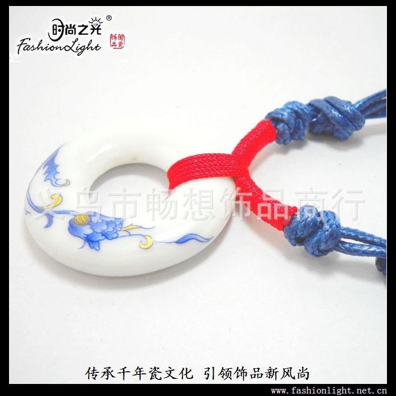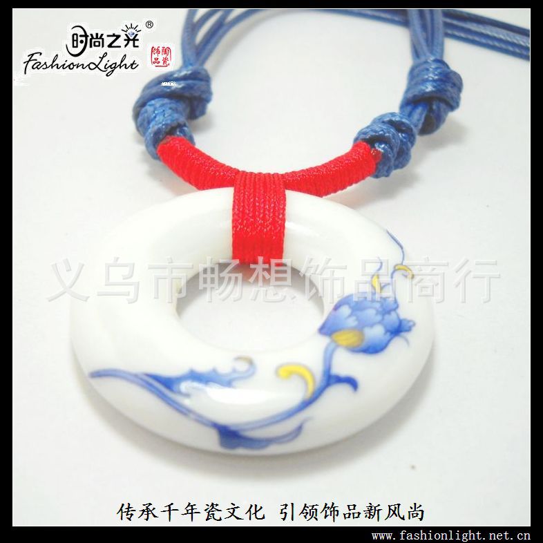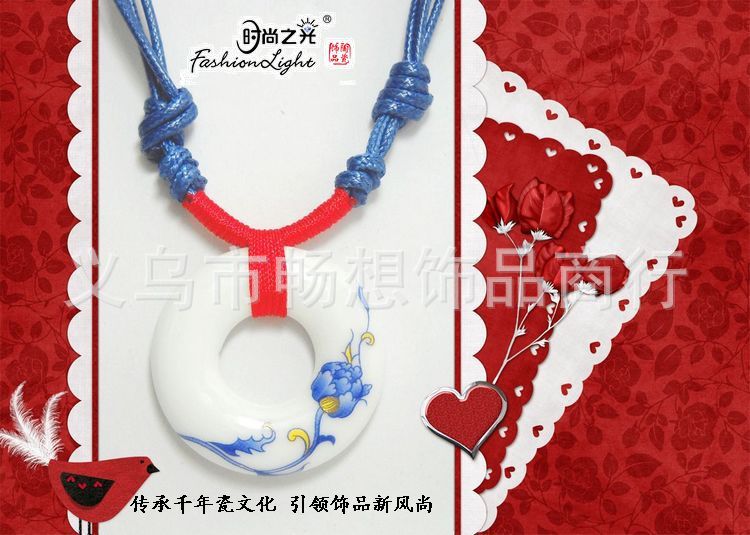 [厂家直销]时尚之光景德镇陶瓷饰品 手工 青花瓷项链(37MM)