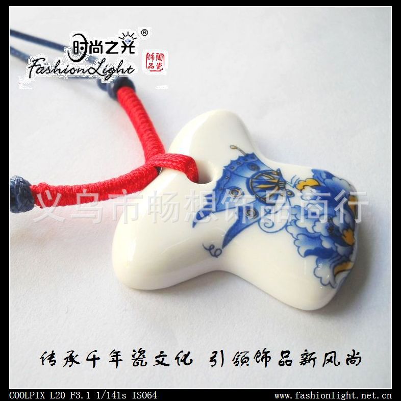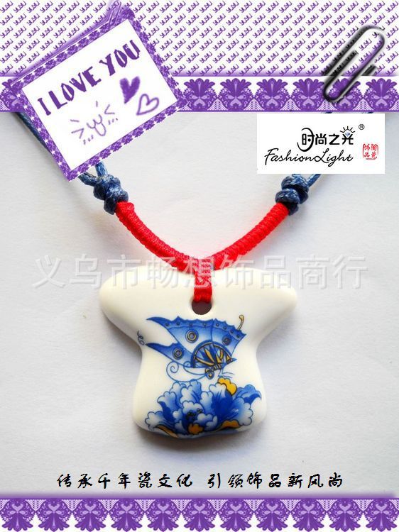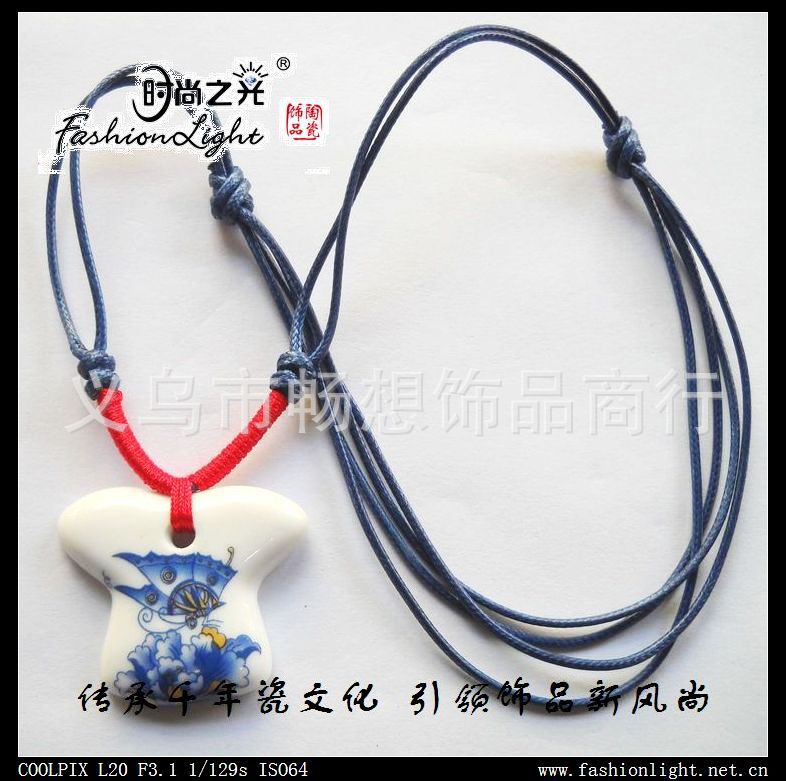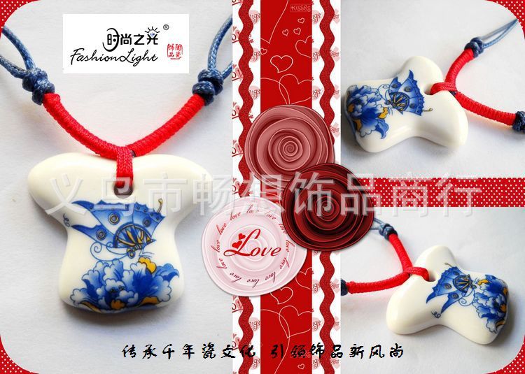 [厂家直销]时尚之光陶瓷饰品 青花瓷 美人瓷项链(42*37MM)