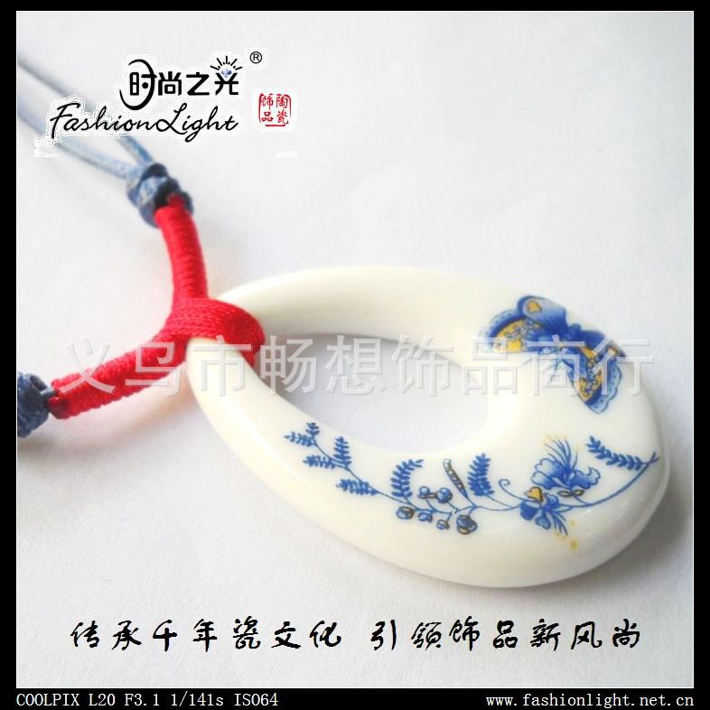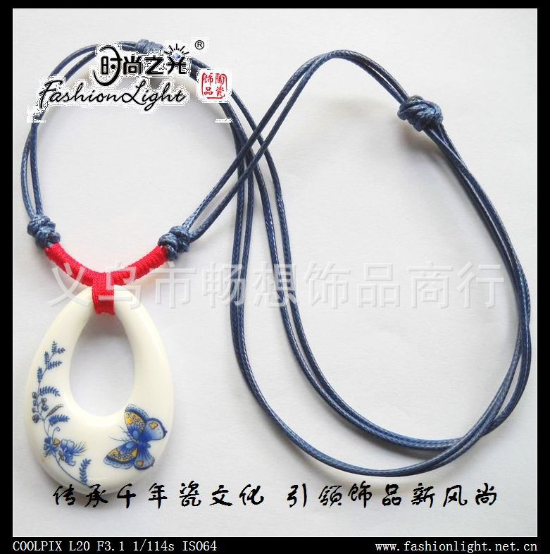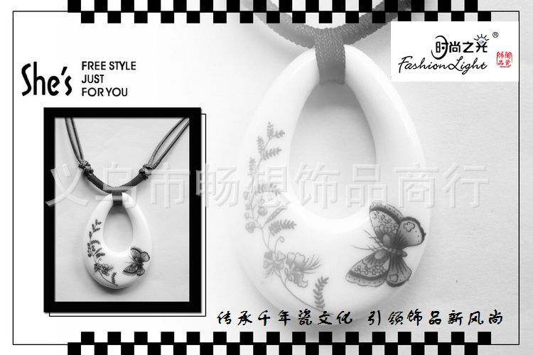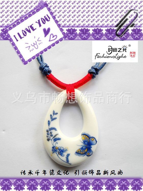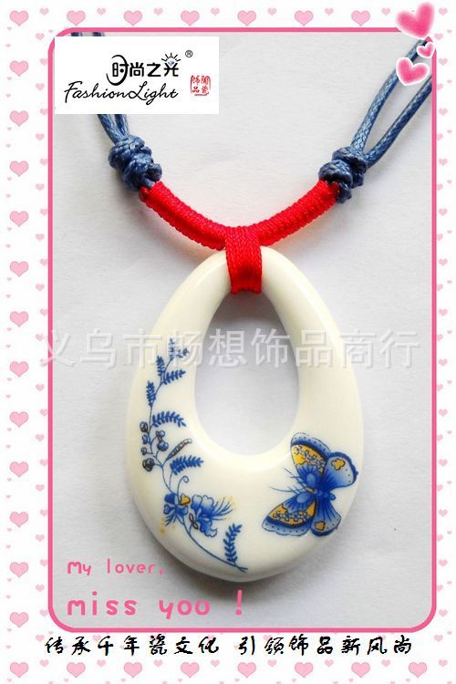 [厂家直销]时尚之光陶瓷饰品 青花瓷 美人瓷项链(50*36MM)
