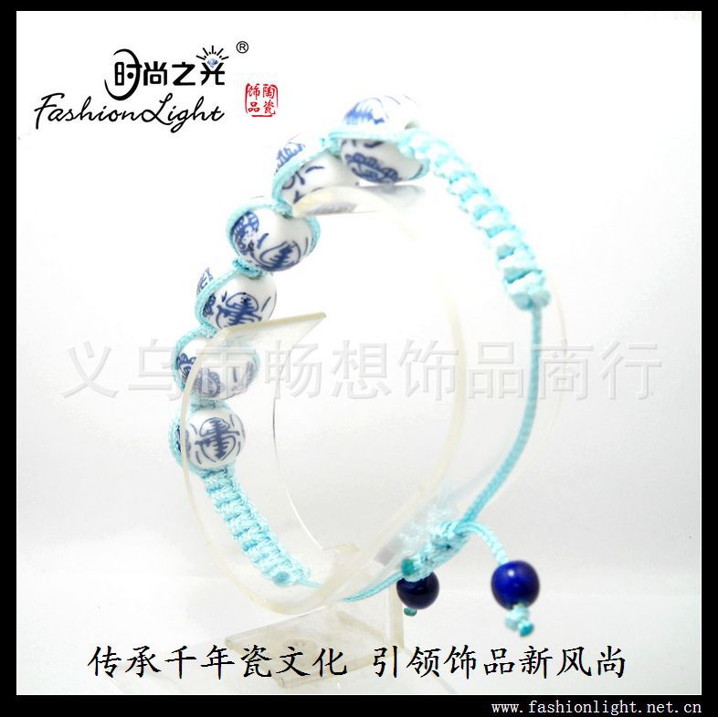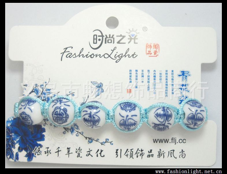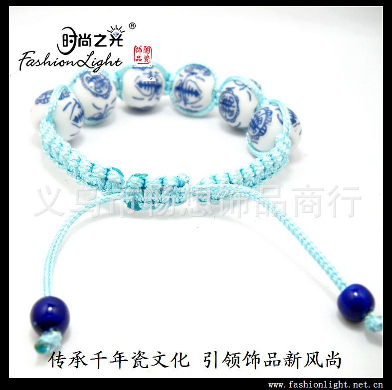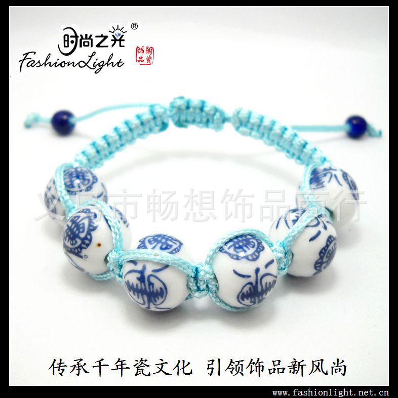 [小额批发]时尚之光特色陶瓷饰品 手工女式 青花瓷手链(12MM)