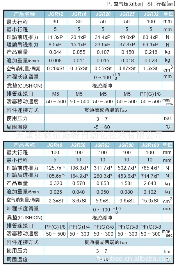 韩国JRT气缸JGR12,JGR16,JGR20,JGR25,JGR32