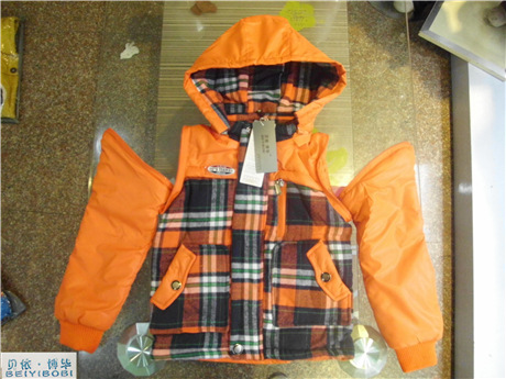时尚韩版180g男中童可脱卸袖棉风衣by12-30