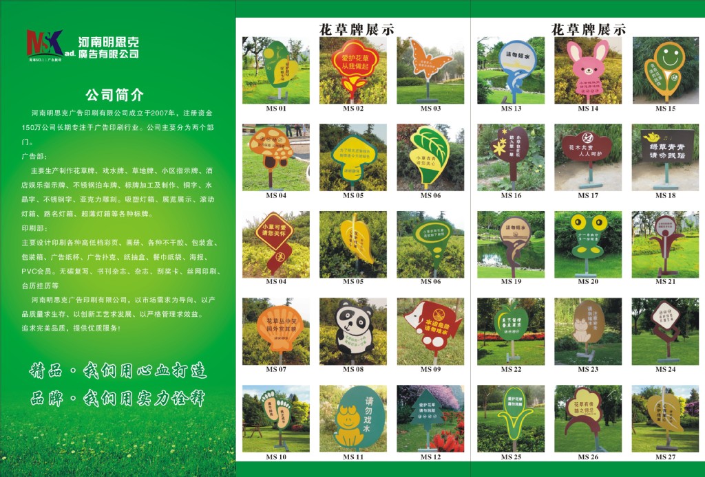 厂家直销花草牌、戏水牌、指示牌、标牌