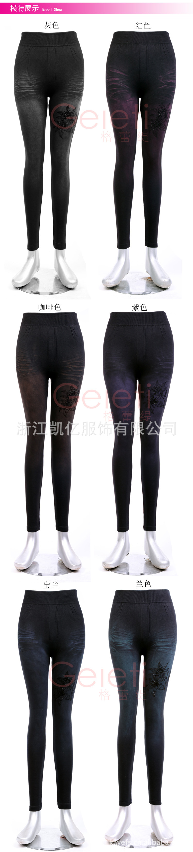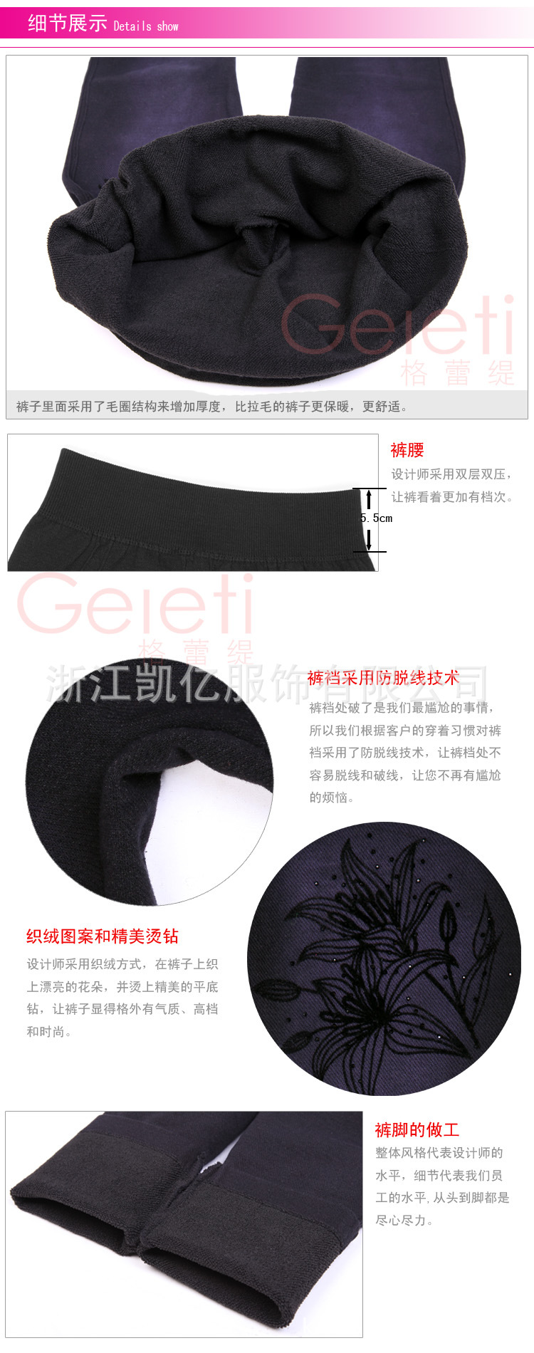纯棉毛圈加厚百搭打底裤 秋冬保暖裤织绒烫钻中老年裤批发9301-3