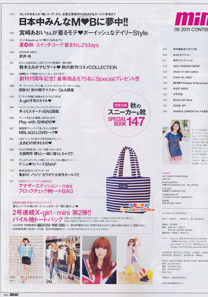 批发MINI杂志款 附录 X-GIRL 紫米白条纹 手袋 手提包