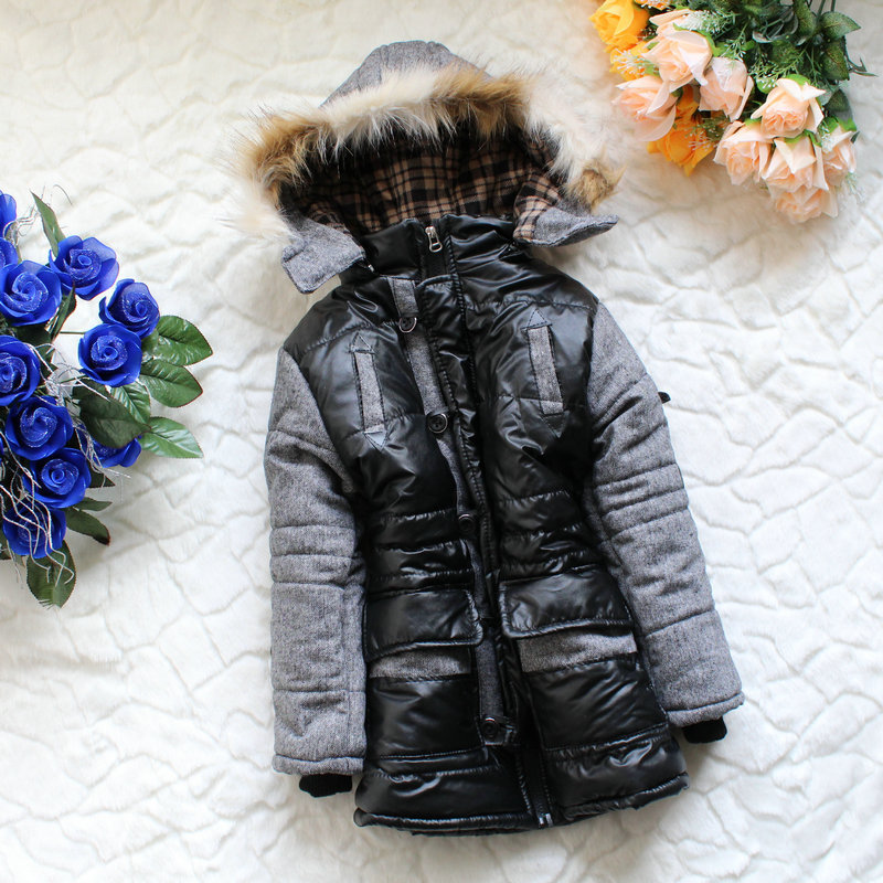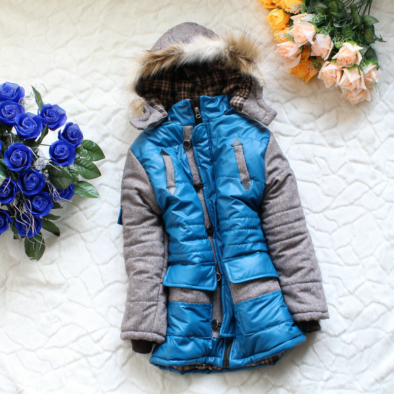 男童韩版中大童装长袖连帽加厚冬季棉袄棉服接皮儿童棉衣 12051