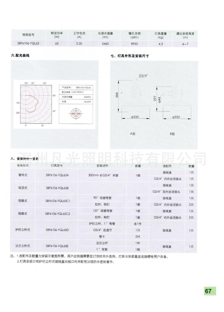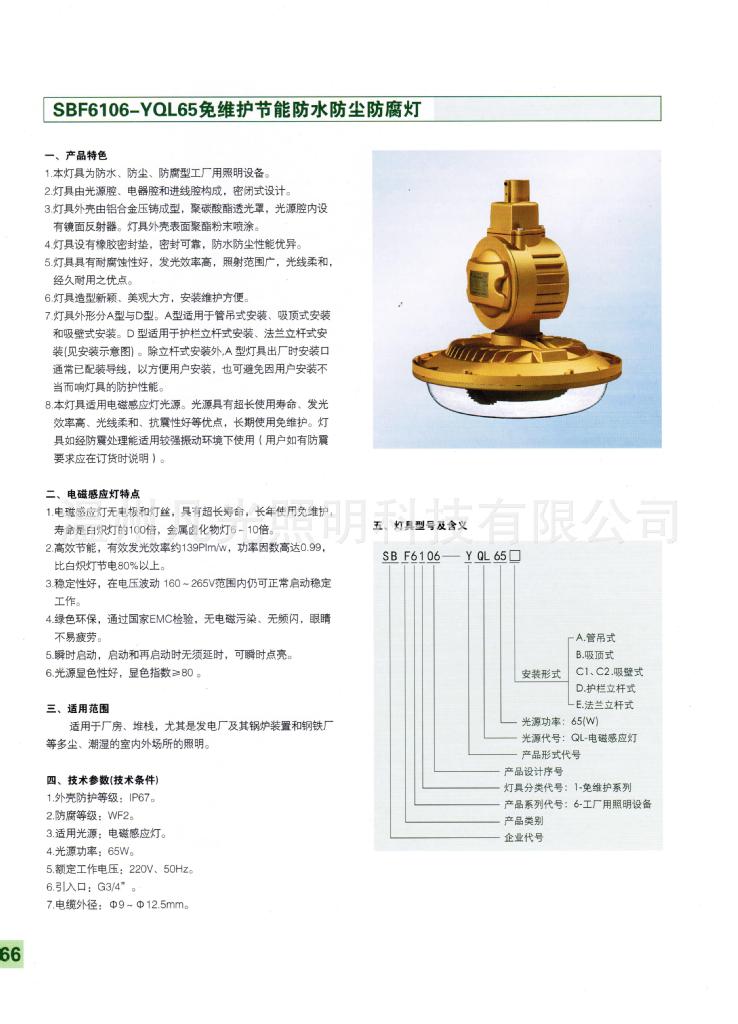 SBF6106-YQL65免维护节能防水防尘防腐灯/sbf6106灯具报价