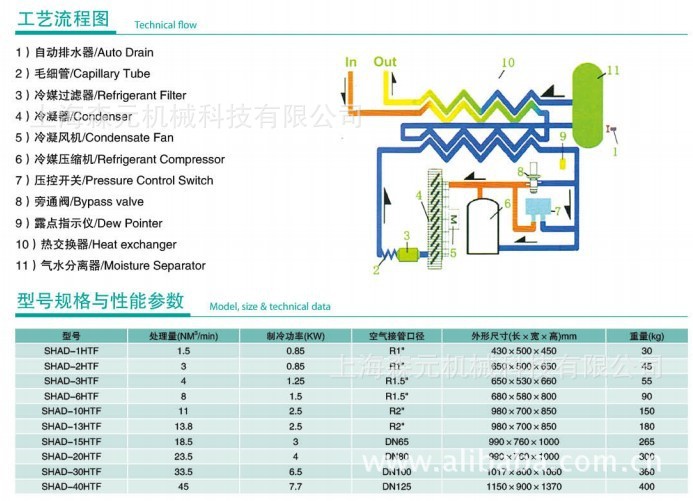 冷冻式干燥机-不锈钢板式换热器、使用环保型冷媒R134a或 R407