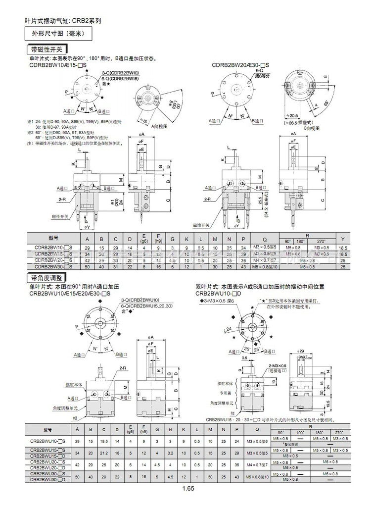 SMC叶片式摆动气缸CRB2BW20-90S
