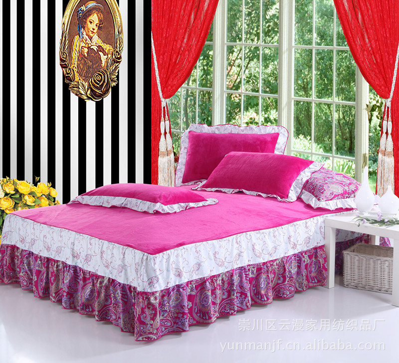 韩版超柔加厚法兰绒四件套 冬季保暖珊瑚绒法兰绒床品批发