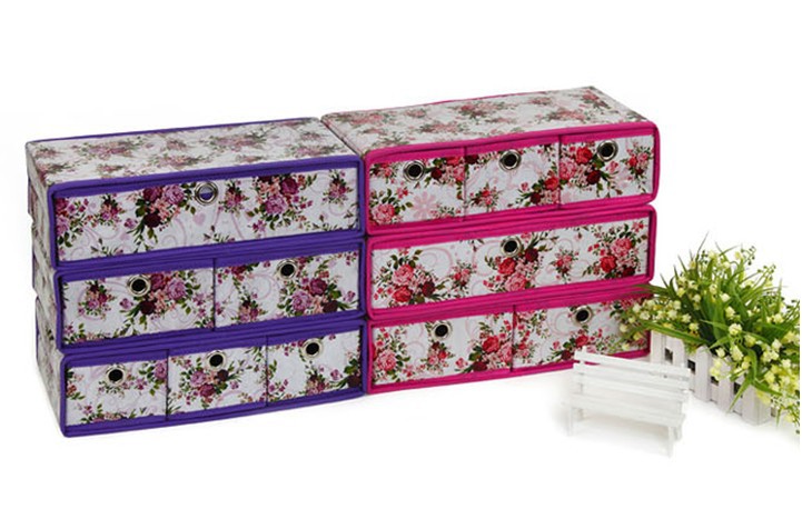万家伴侣 高雅玫瑰无纺布收纳盒 组合抽屉收纳盒三件套 厂家批发