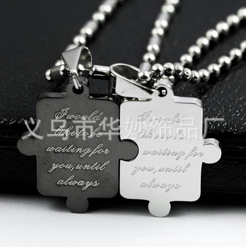 时尚首饰批发 日韩版首饰批发 黑银色 钛钢情侣项链 项饰DQ110