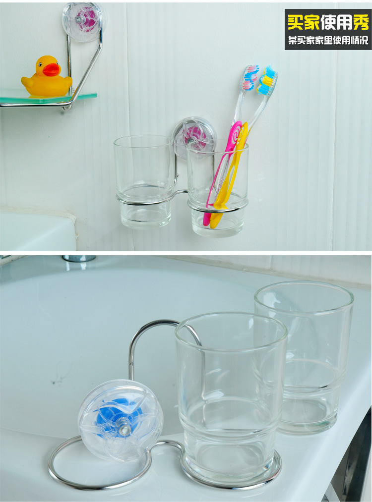 太友无痕吸盘创意家居 情侣漱口杯套装 玻璃漱口杯刷牙杯批发