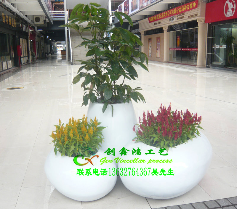 玻璃钢鸡蛋型花盆、玻璃钢三组合景观花盆-玻璃钢创意花盆