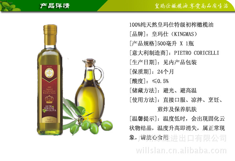 皇玛仕中国总代理原装进口特级初榨橄榄油500ML*1瓶裸装