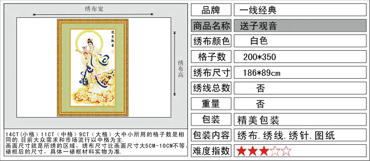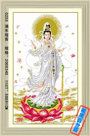 精准百分百印花布十字绣套件 观音菩萨像 送子观音 客厅大画