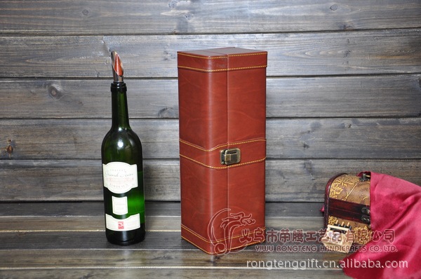 定制单支红酒盒 棕色红酒酒盒 红酒包装盒 皮质酒盒 包装盒酒盒