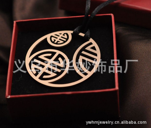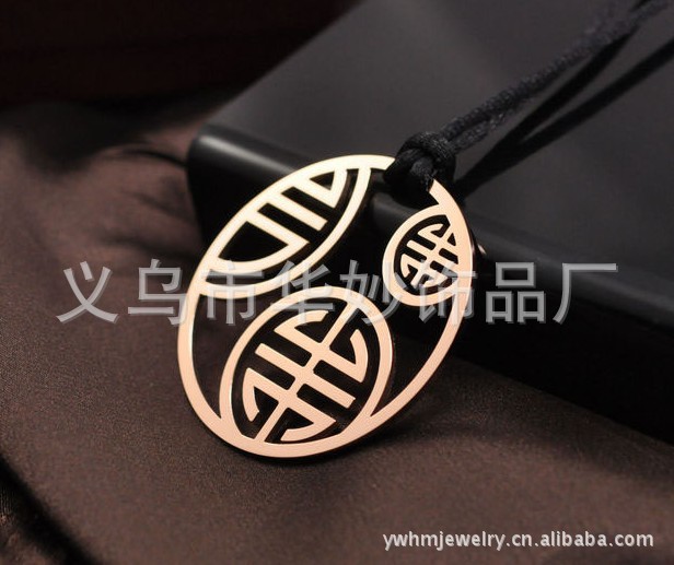 厂家直销316钛钢玫瑰金圆环喜字项链 女式经典热销品牌饰品批发