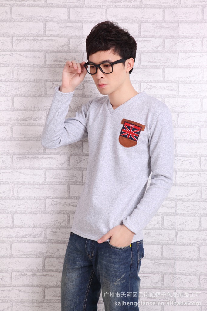 保暖T恤 不倒绒 韩版休闲男装长袖t恤男 加绒加厚弹力保暖男T恤