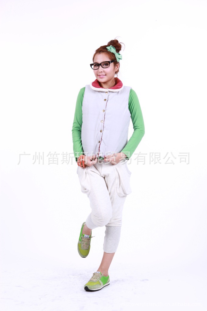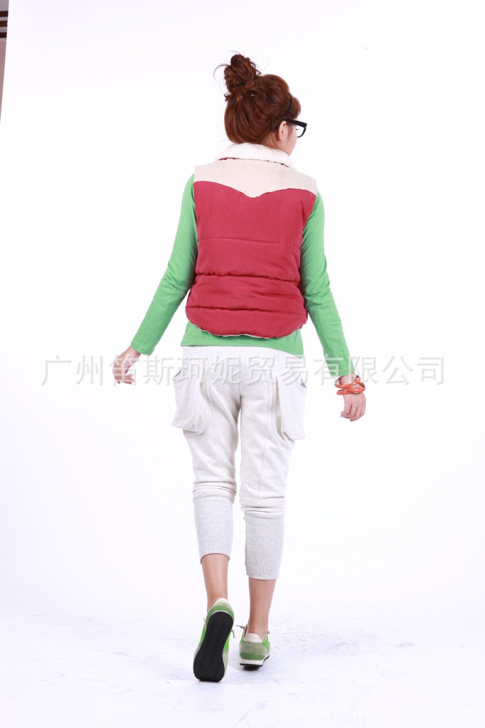 韩国discoveryisland冬季新款 毛圈拼接加棉钉扣短款韩版夹棉马甲