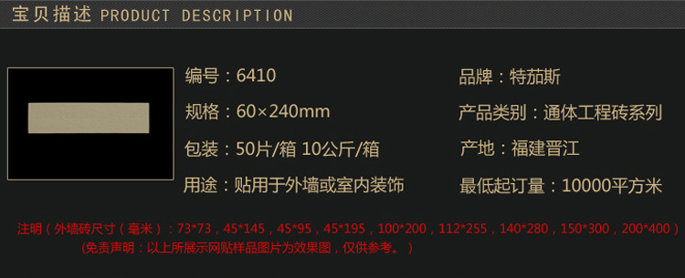 厂家直销 批发彩码砖 纸皮砖 工程砖 外墙砖(60*240mm)6410