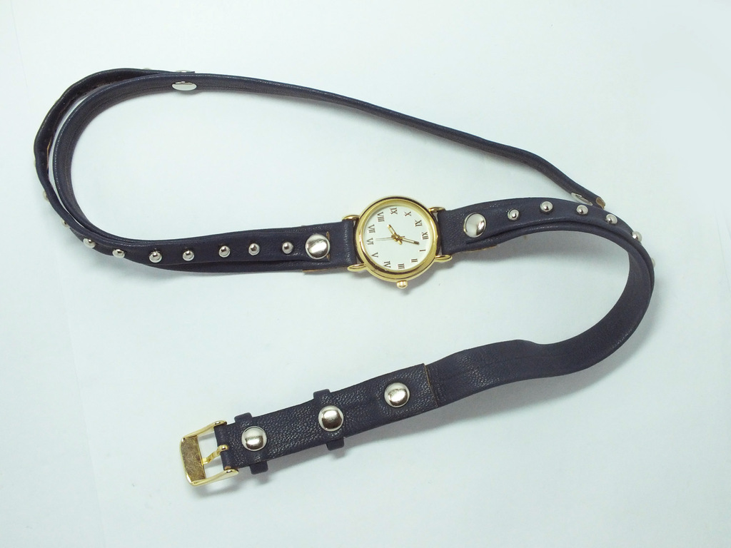 手表工厂订做复古罗马数字百搭时尚铜钉超长表带手链式手表