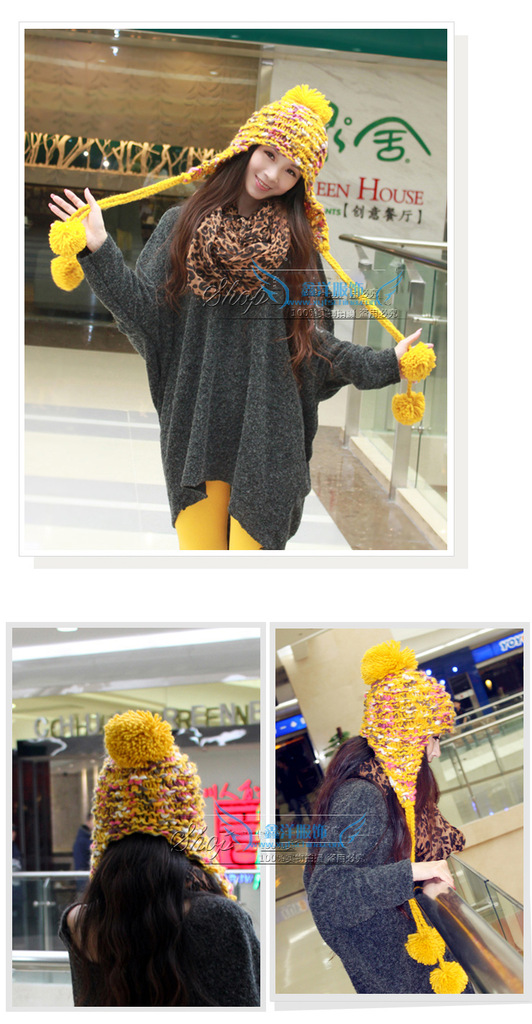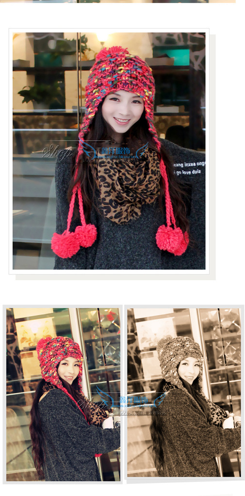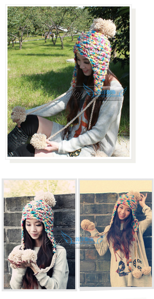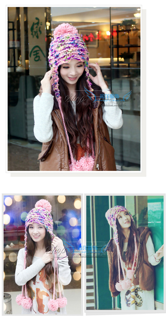 秋冬毛线帽批发 女韩版Angel baby同款护耳彩色辫子保暖毛线帽