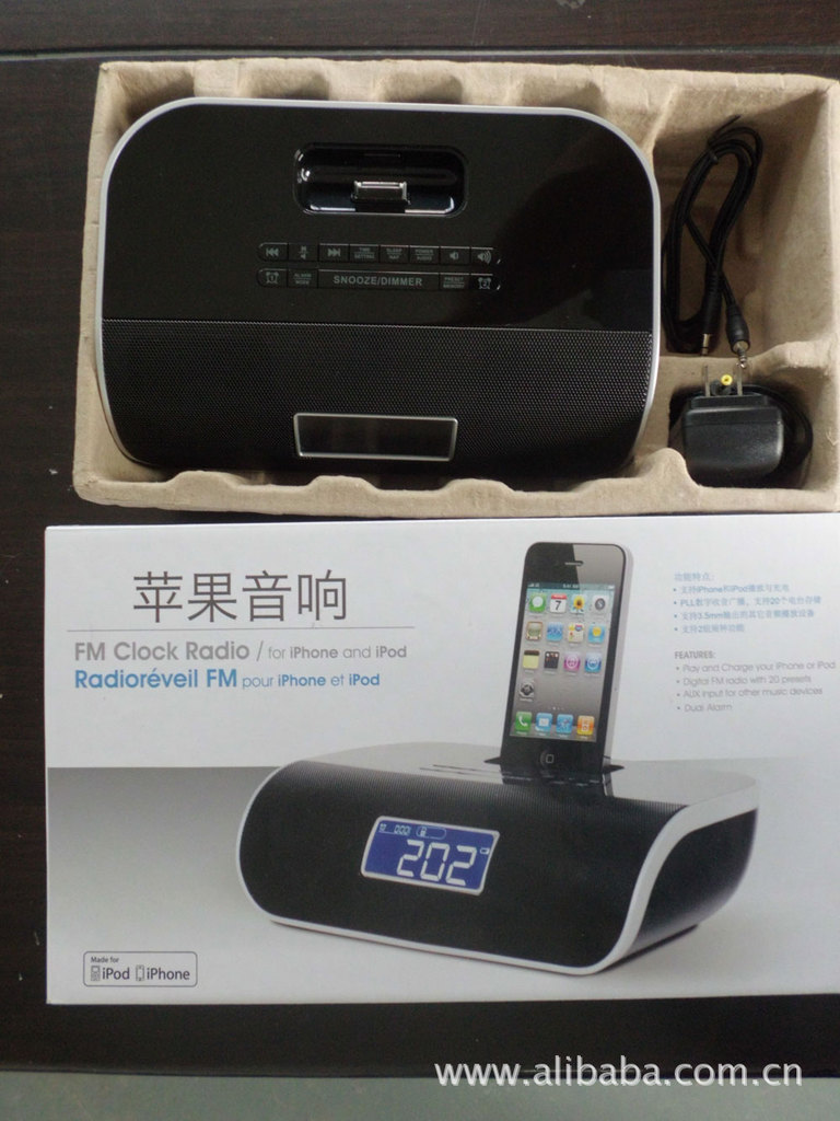 iphone/ipod充电播放器底座AM/FM收音箱酒店客房床头柜闹钟音箱