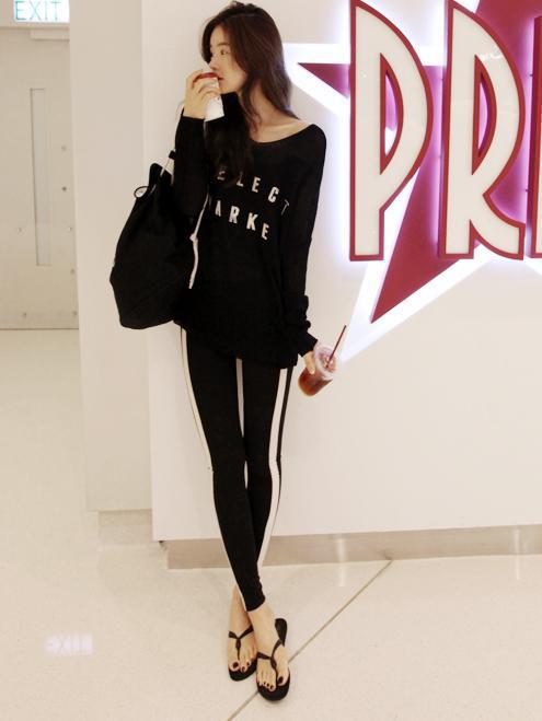 批发直销 韩国运动风黑白拼色拼接条纹百搭打底裤长裤YE637