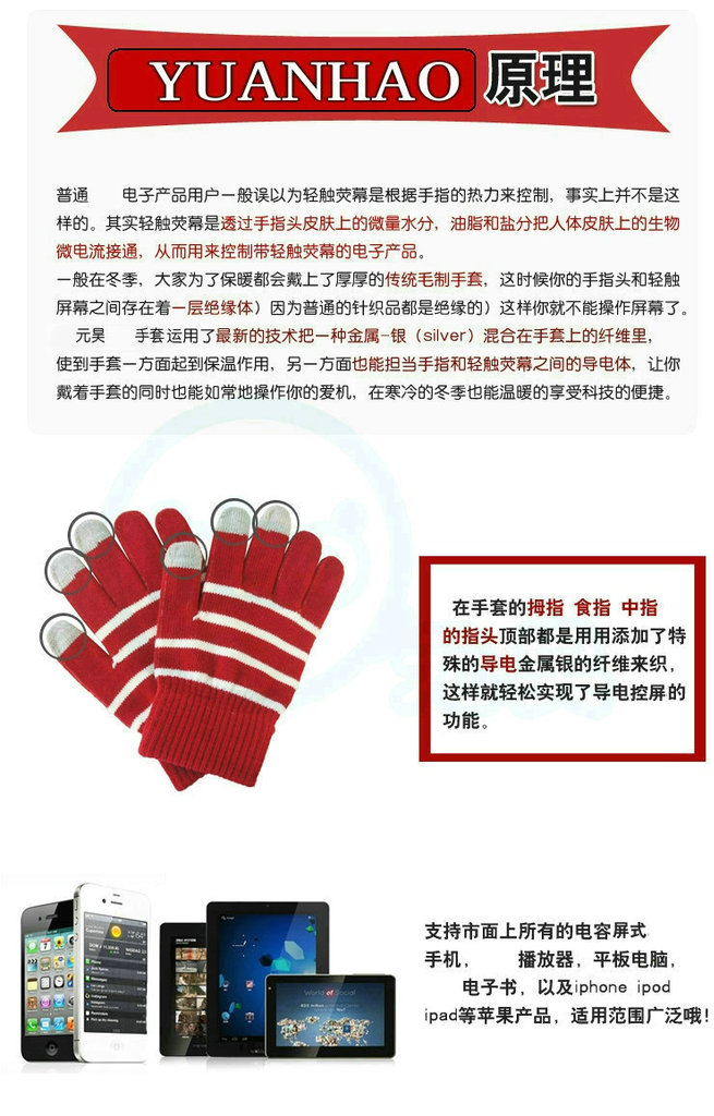 元昊新款女士条纹ipad手套iPhon手套触摸屏手套